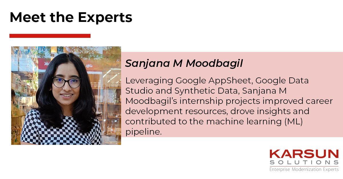 Karsun Solutions Llc On Twitter Leveraging Google Appsheet Google Data Studio And Synthetic Data Sanjana M Moodbagil S Internship Projects Improved Career Development Resources Drove Insights And Contributed To The Ml Pipeline Https T Co